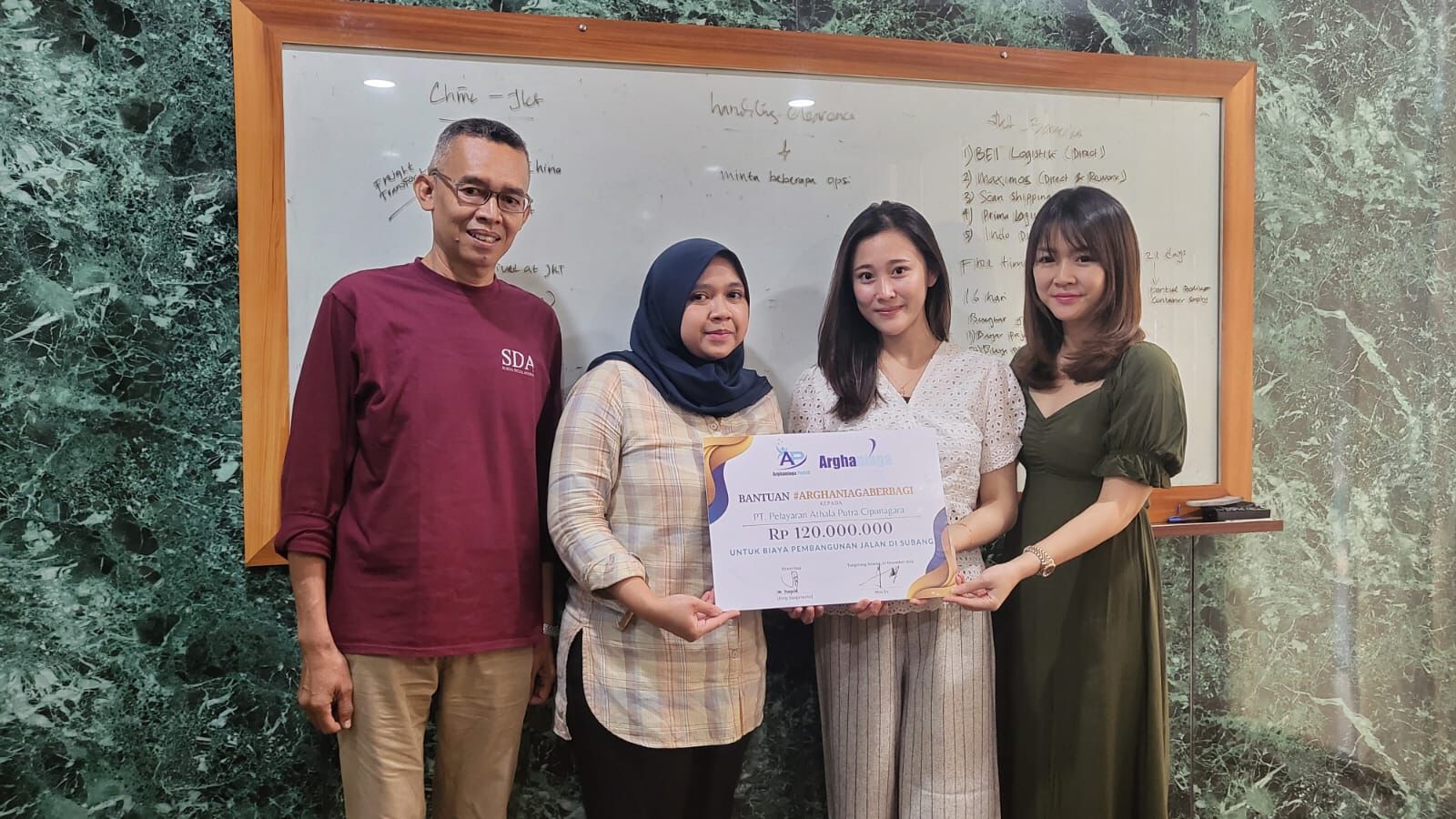 Pada tanggal 27 Desember 2022, Arghaniaga Peduli memberikan bantuan untuk biaya pembangunan jalan di Subang.